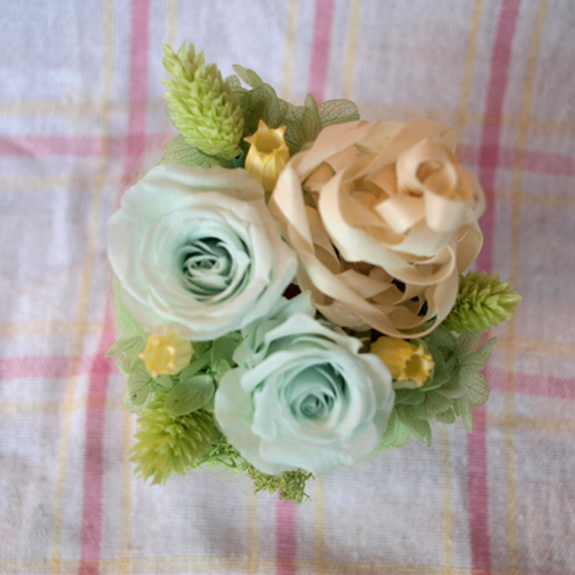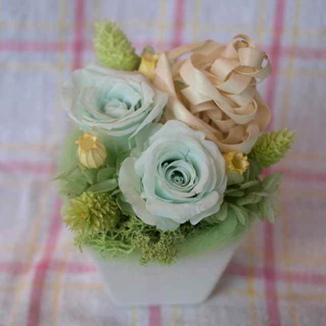 つぶらな瞳でみつめてくるネコのアレンジメント。