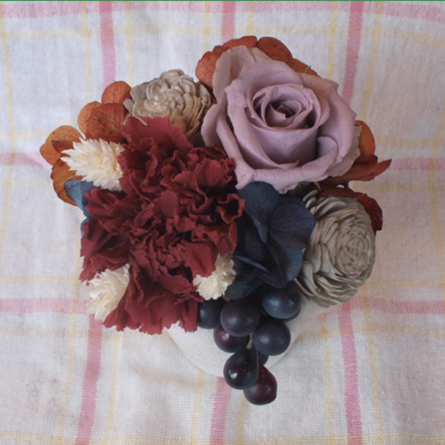 ぶどうがこぼれ落ちそうなシックなアレンジメント