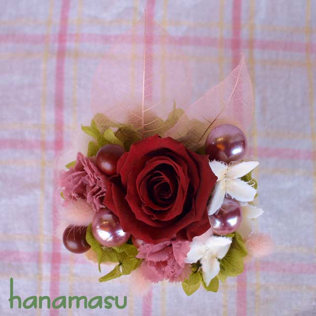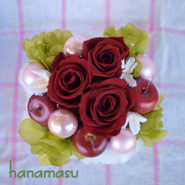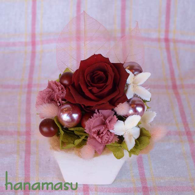 赤いバラ一輪の小ぶりだけど、存在感のあるアレンジメント。