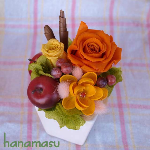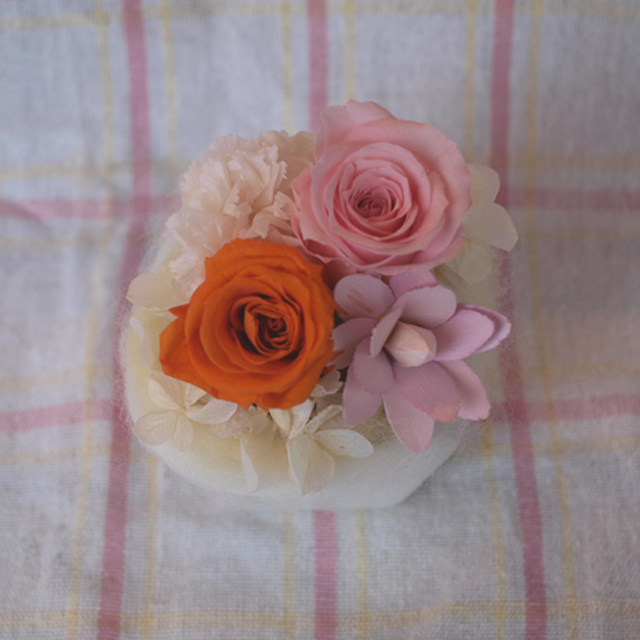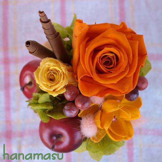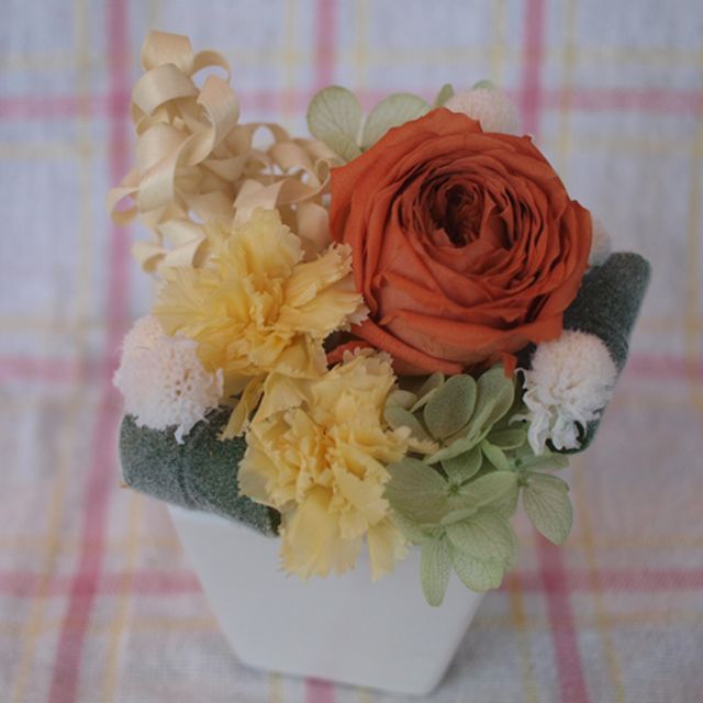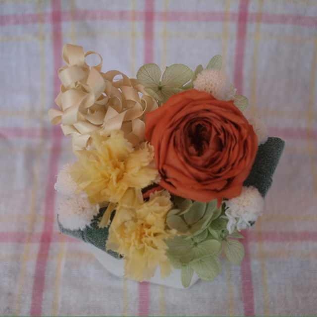 オレンジ色のちょと美味しそうなビタミンカラーのアレンジメント。